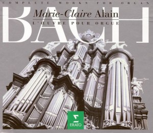 Marie-Claire Alain (1926-2013). Elle fut la plus grande. Sa connaissance profonde du répertoire, son travail de pédagogue et ses innombrables concerts (plus de 2500!) on fait d’elle une des plus respectées à travers la planète. Une somme colossale d’enregistrements. Pas une, mais trois intégrales Bach! Cette dernière est un projet qui lui tenait particulièrement à coeur. Enregistrer toute l’oeuvre sur des instruments historiques, la plupart datant du 18e siècle.